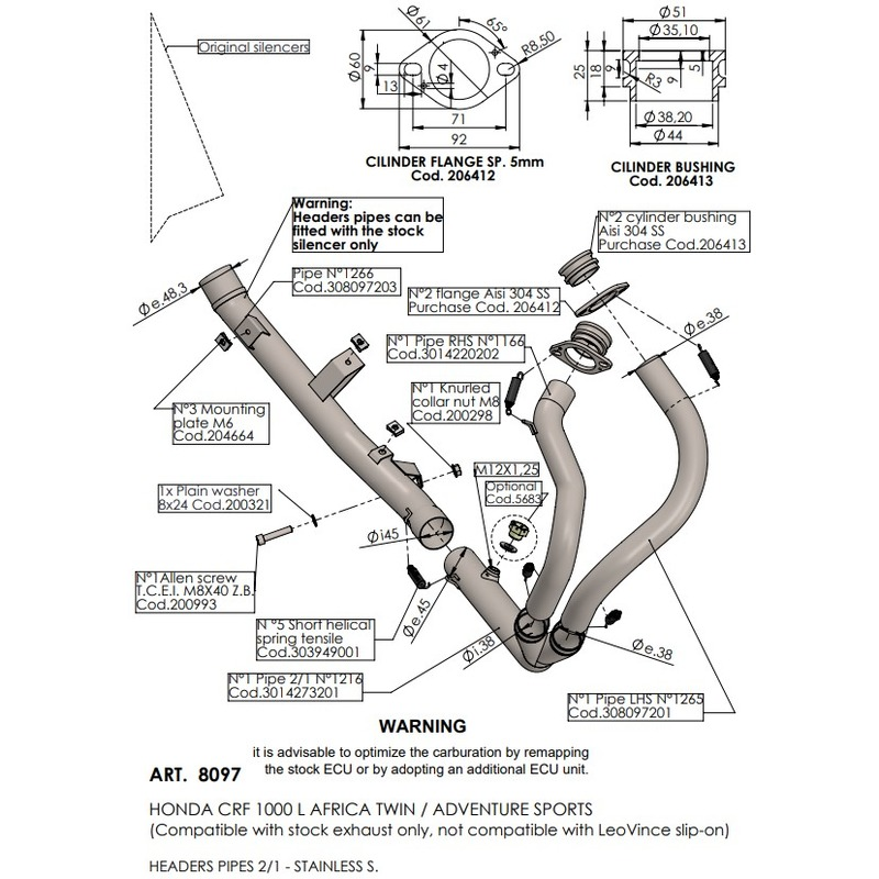 ARROW 72176PD Header Collector set: Stainless Non-Cat - HUSQVARNA