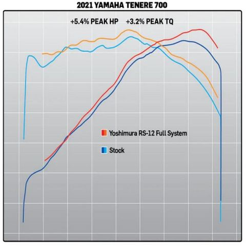 Our R&D team is very familiar with the 689cc parallel twin engine and their main goal was to get as much performance as possible from the T7. We called on our new RS-12 ADV Race Series full system that has been specifically designed for off-road performance. It carries more power through the entire power spectrum, looks insane and it sounds like a beast! We were able to boost up the power and torque on the new Yamaha by 5.4% peak HP and bumped up the peak torque by a very nice 3.2%, numbers that will provide even more off-road fun as well on the race course with the T7. We even saved 6.3 pounds compared to the stock system!